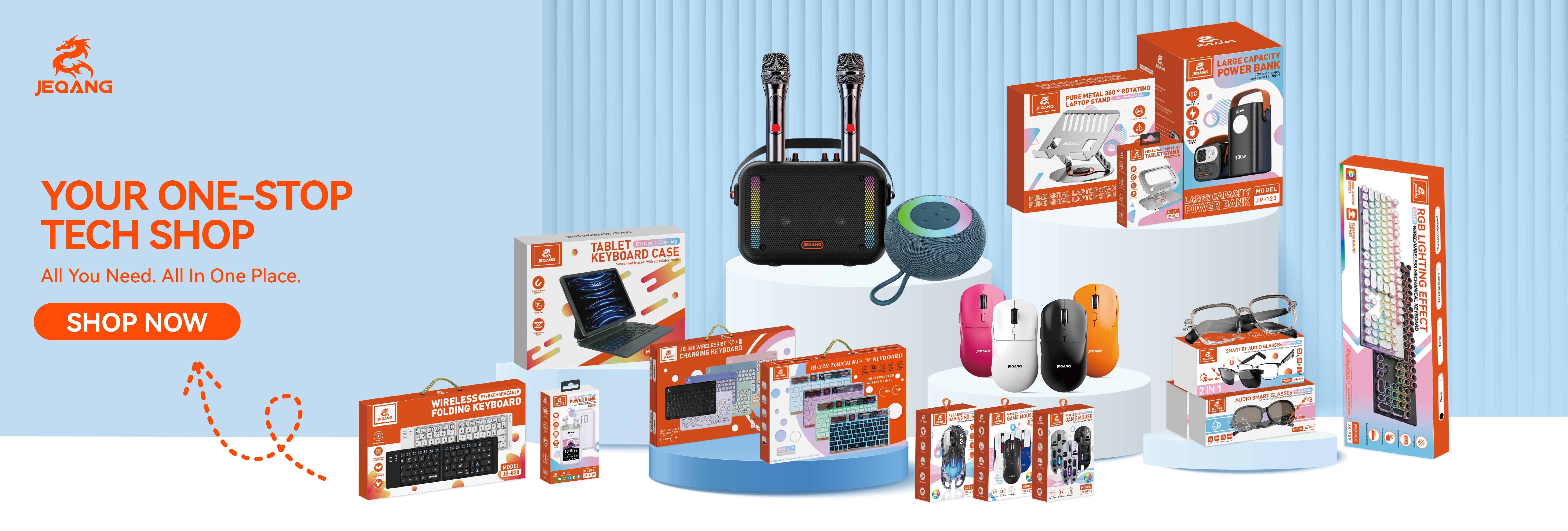 JEQANG Technology is a professional company that integrates industry and trade to produce and sell a full range of 3C electronic consumer goods. Our brand is ”JEQANG“. Currently, our brand has more than 500 products, and our team of more than 50 people is responsible for operation, development, and sales. We have more than 10 professional JEQANG brand image physical wholesale and sales stores in major wholesale markets in Shenzhen, Guangzhou, Yiwu, and Kashgar, China. We have nearly 20 national agents abroad, online and offline models, and more new models are constantly being developed and updated. We welcome friends from all industries to join us.
